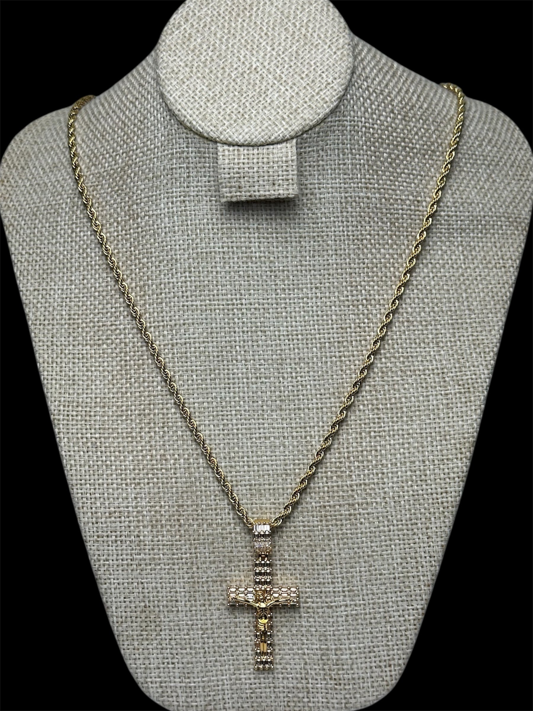 Cadena Torzal Dorada con Dije Cruz Mediana