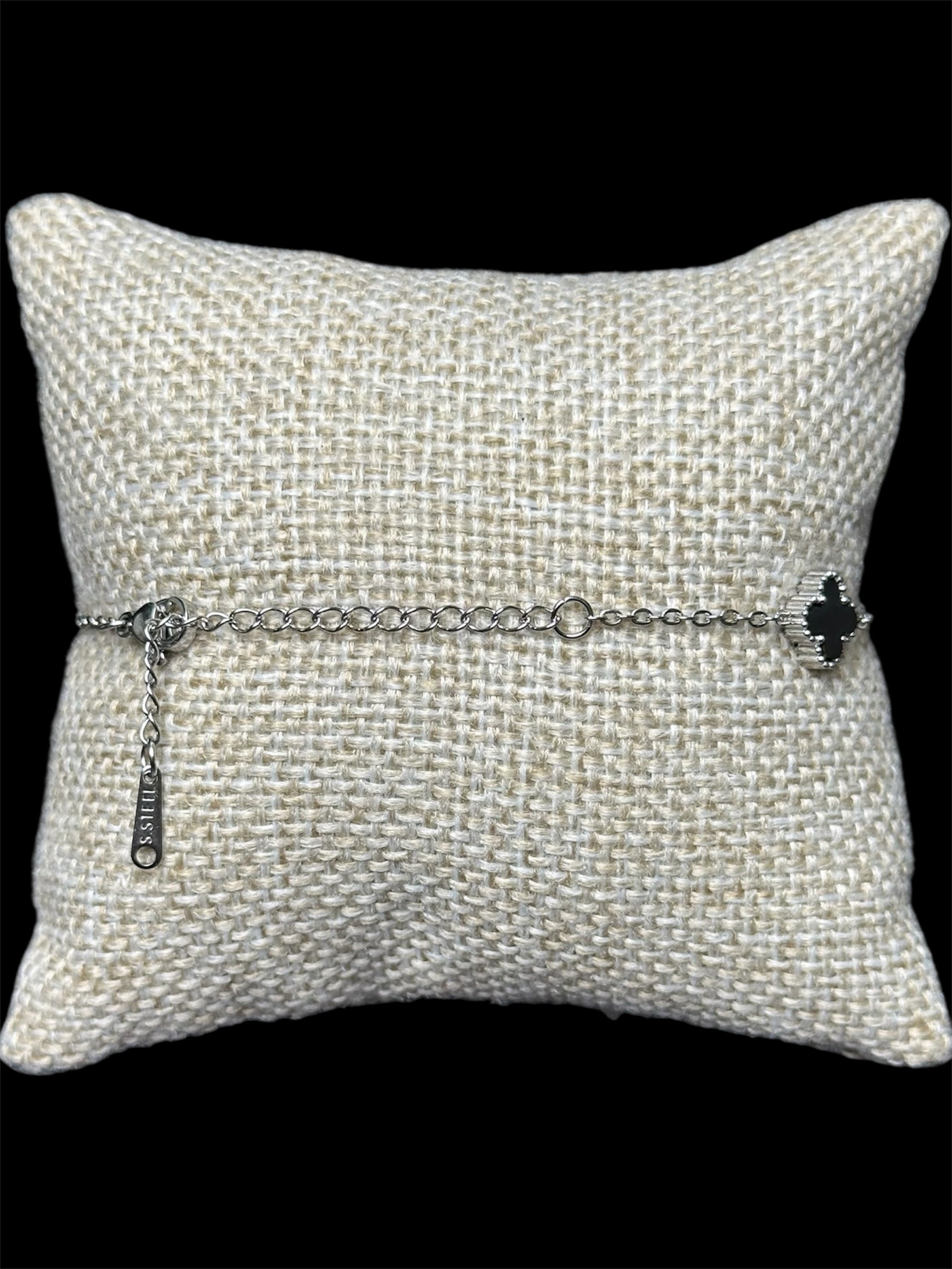 Pulsera VC Negra Plata Trebol Mini Acero Inoxidable