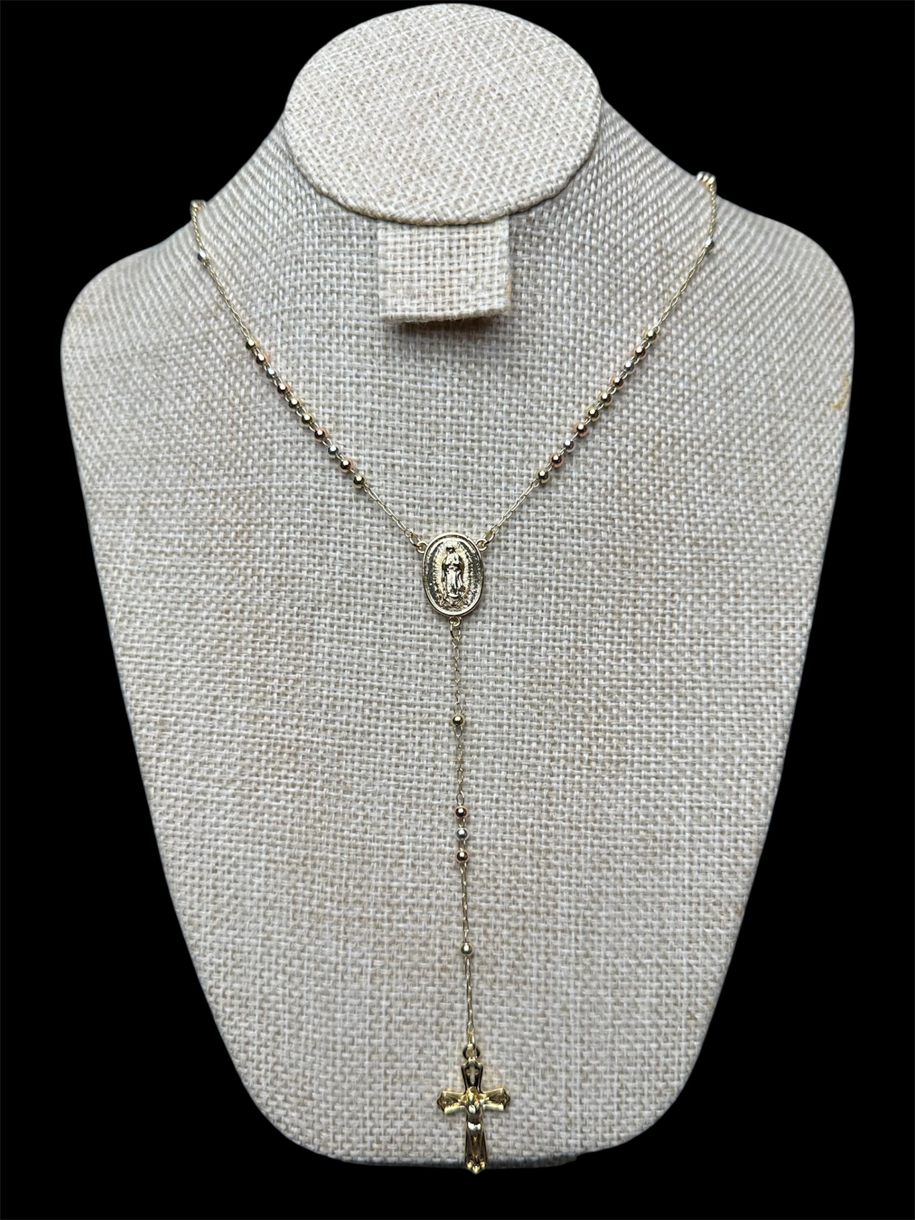 Medidas: 2 mm x 50 cm hasta la virgen, + 10 cm de la virgen a la cruz